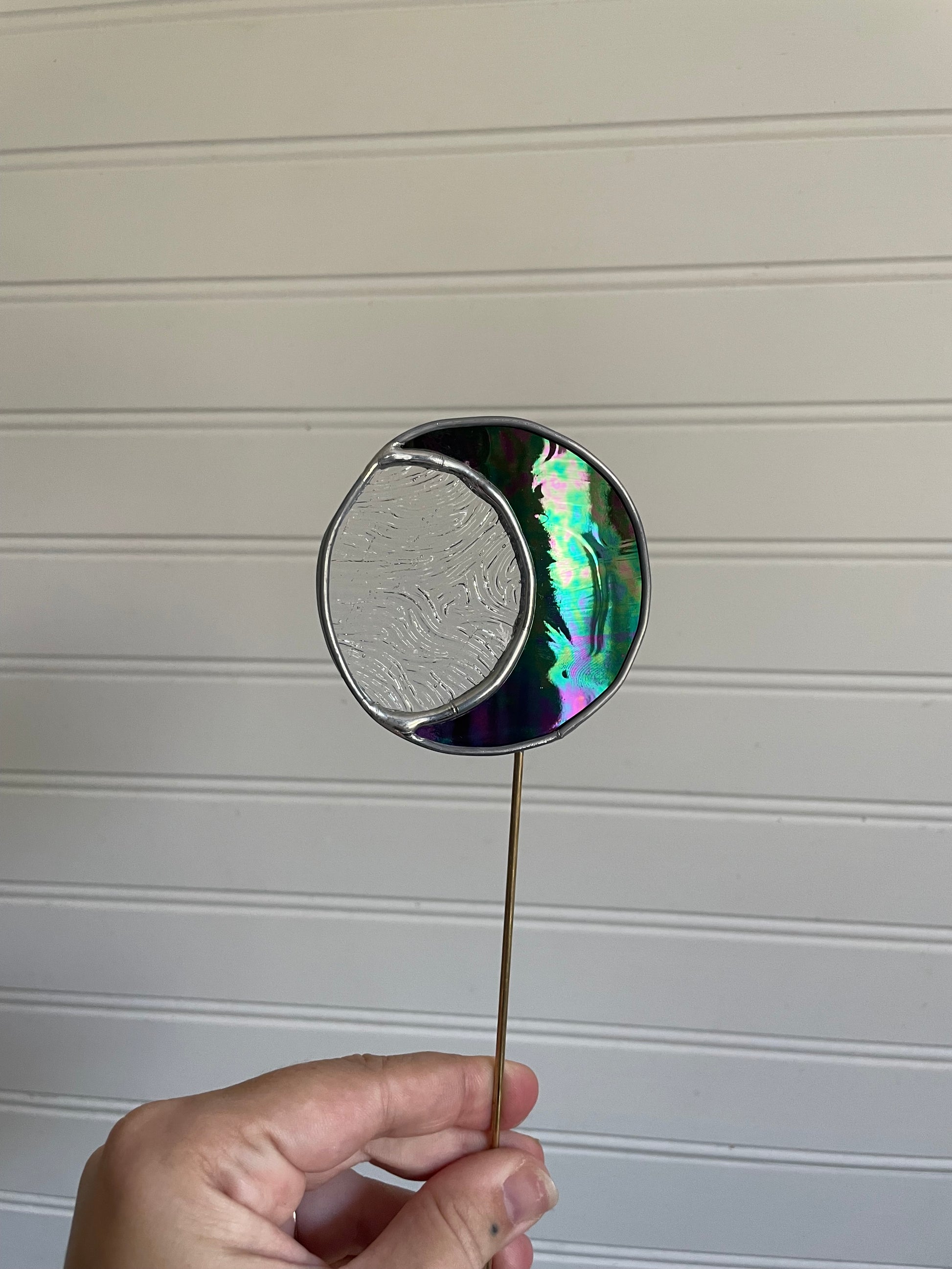 Irid purple moon plant stake