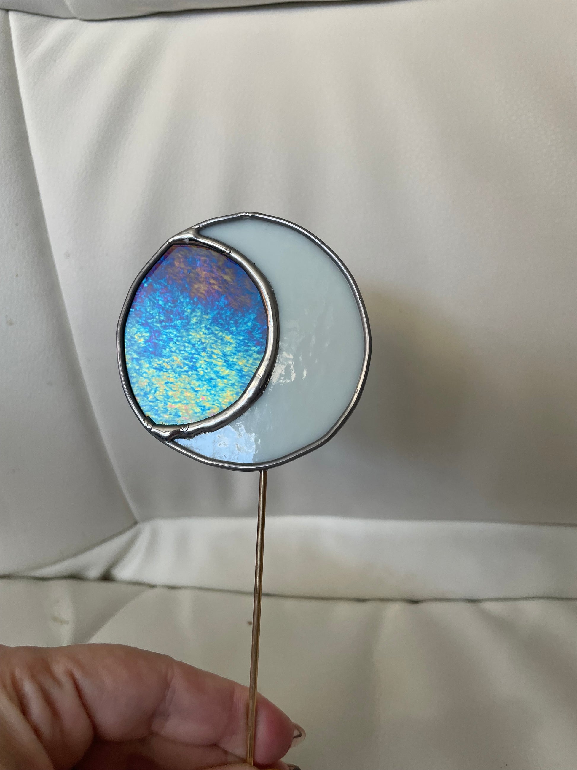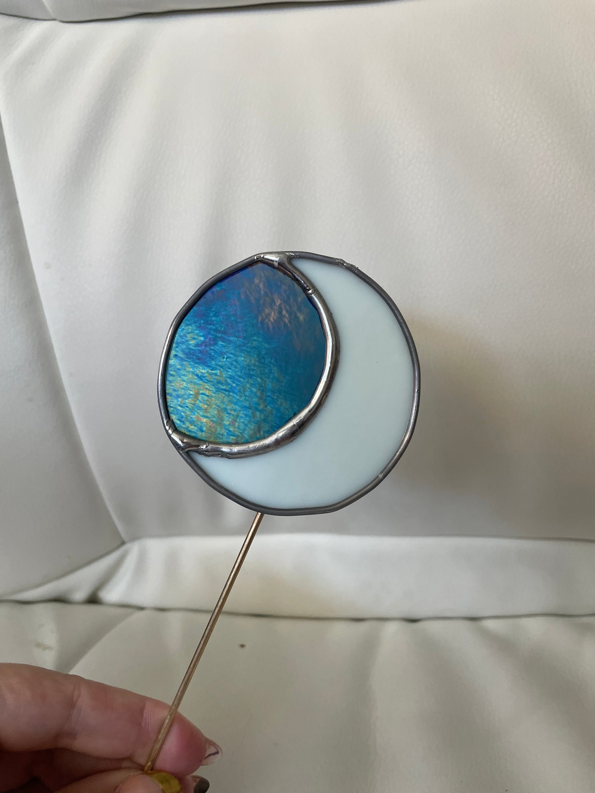 White and blue Moon plant stake